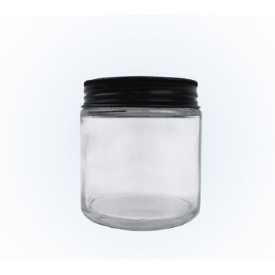 Стеклянная баночка км-100мл, твист прозрачная с черной алюминиевой крышкой в комплекте