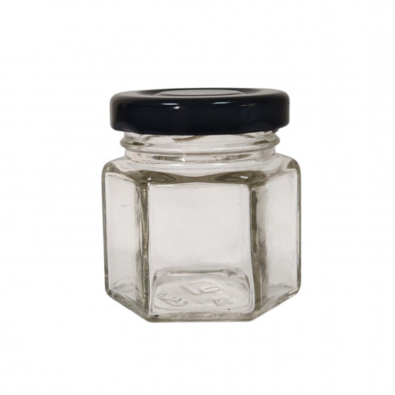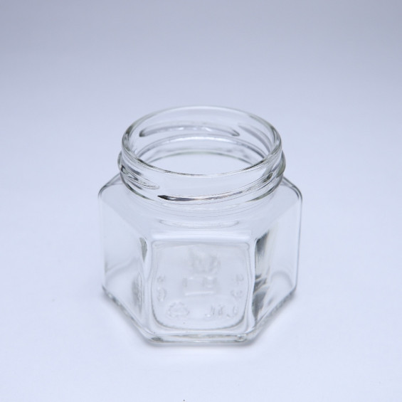 Стеклянная граненая банка 40мл в виде медовых сот напрашивается использовать для меда и медовых продуктов, для хранения сыпучих продуктов, маленьких вещиц.