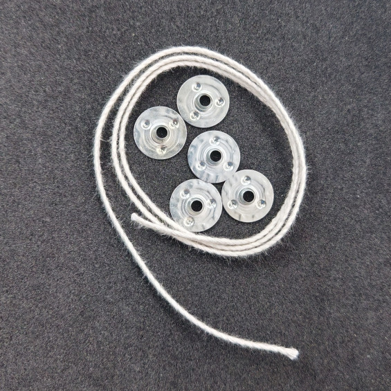 Фитиль хлопковый 50 см с держателем 5 шт в комплекте для создания 5 свечей. Хлопковая нить цельная, не разрезана для вашего удобства: можно сделать нить любой длины в зависимости от емкости для создания свечи.