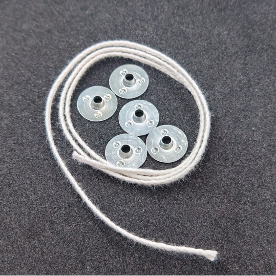 Толщина и плетение: Специальное плоское плетение из 24 тонких хлопковых нитей, сгруппированных в 6 пучков. Это предотвращает сильное искривление фитиля при горении.