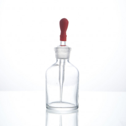 Капельница Страшейна 2-60 мл, светлая с пробкой и пипеткой. Объем 60 мл, размеры 85х46 мм.