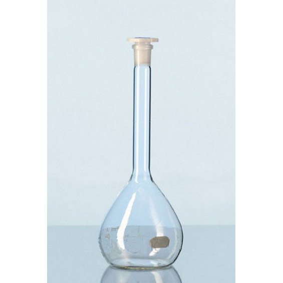 Колба лабораторная мерная с одной меткой и полиэтиленовой пробкой 2а-100-2. Пробка 10/19 мм. Объем 100 мл. Высота 170 мм.