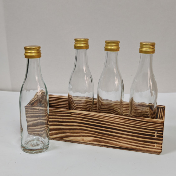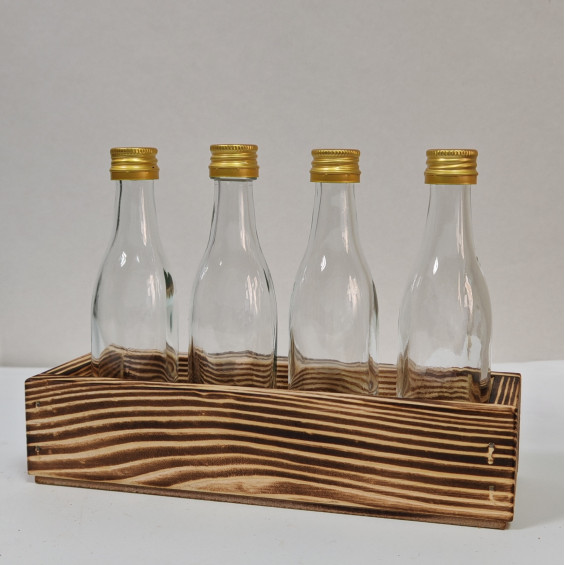 Отличный набор из 4 стеклянных бутылок Миньон 50 мл в боксе с джутовой ручкой.