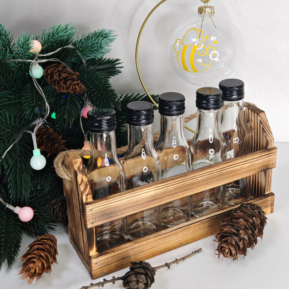 Отличный набор из пяти прозрачных бутылочек Патрон (Мерзавчик) объемом 100 мл под винтовые крышки.