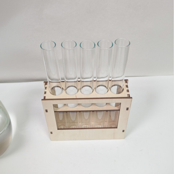 Подставка деревянная штатив для 5 пробирок 60 мл в комплекте. Поставляется в комплекте с 5 пробиркам..