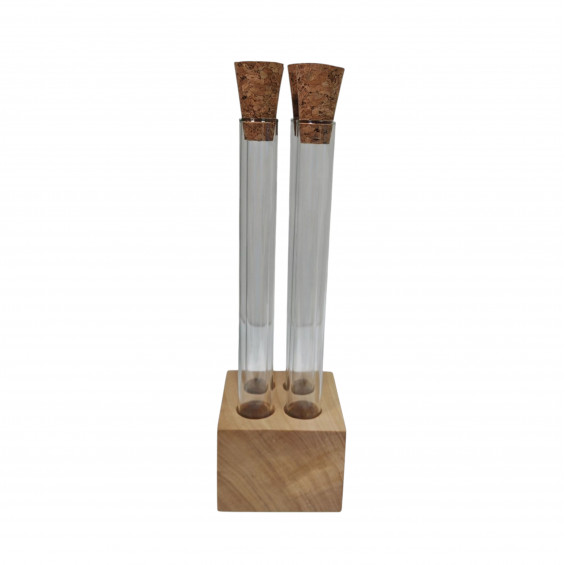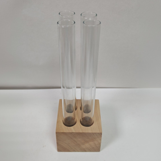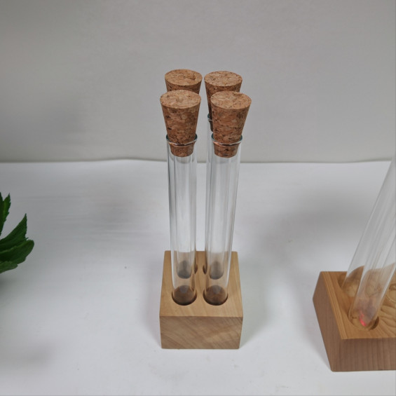 Набор Кватрадец в дереве. Включает в себя подставку из дерева и 4 пробирок 60 мл с пробками. Деревянная подставка с пробирками сделана из натурального дерева. Подходит для хранения специй, канцелярии, цветов или сухоцветов. В комплекте с подставкой идет 4 пробирок с корковыми пробками.