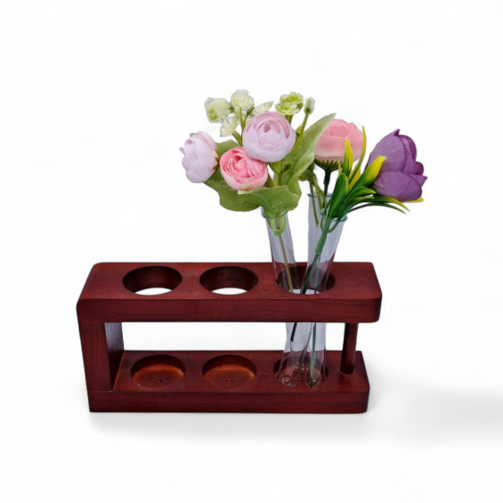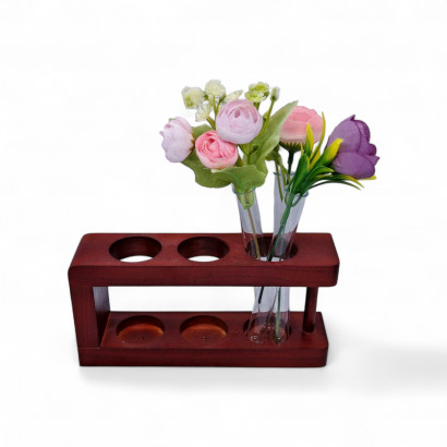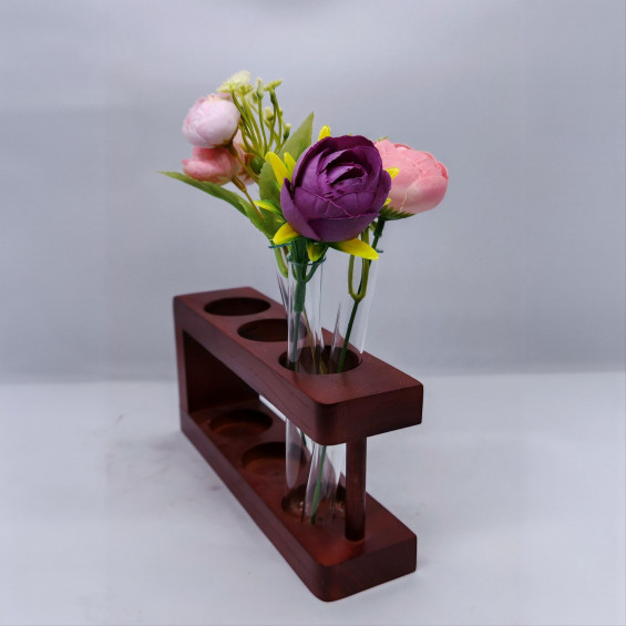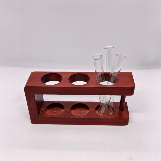 Красивая деревянная (из цельного дерева) подставка-штатив. На уценке, поскольку отсутствует колба, вместо колбы предлагается вариант с тремя пробирками, в которые можно поставить цветы. Интересно смотрится, а с цветами и канцелярскими принадлежностями прекрасно подойдет в качестве подарка как подарок учителю, воспитателю, медицинскому работнику, коллеге, руководителю, или просто для себя.